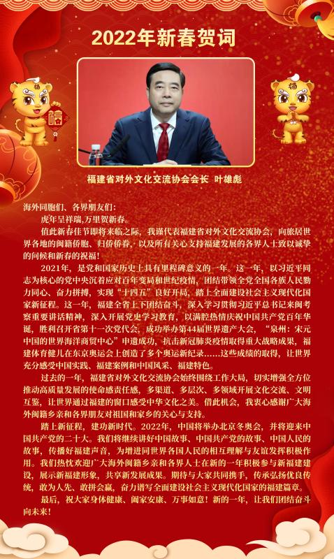 福建省对外文化交流协会会长叶雄彪给大家拜年 -k8凯发百家乐