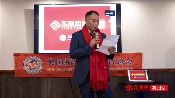 东南网英国站副站长、英国福建社团联合总会主席团委员、英国福建华商总会会长叶发敏致辞