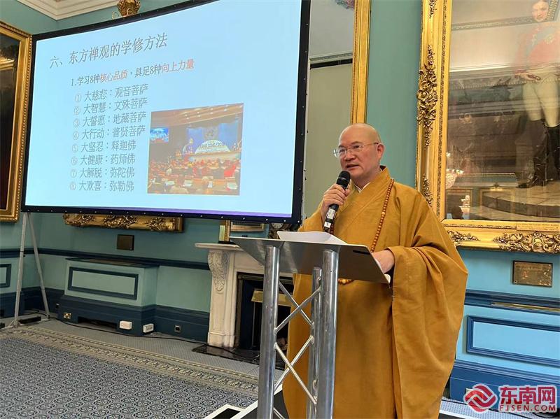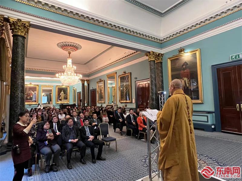 东南网11月28日讯(记者 夏芳)中华禅文化是中华优秀传统文化的重要组成部分,超越时代、超越国家,具有强大生命力。当地时间11月27日,由英国福建社团联合总会、福建东南网海外传媒有限公司共同主办,福建日报社东南网英国站承办的“中华禅文化海外行”走进英国交流活动在伦敦成功举办,吸引了英国侨团侨领、华侨华人、机构代表、媒体等约200名嘉宾参加。全国政协委员、中国佛教协会海外交流委员会副主任、福建省佛教协会常务副会长、福建佛学院院长、中华禅倡导者与导师、“中华禅文化海外行”交流团团长本性禅师作《禅和天下——东方禅思与西方冥想》的禅学讲座。讲座充满禅思和智慧、深入浅出,收获了众多英国侨胞与民众点赞。