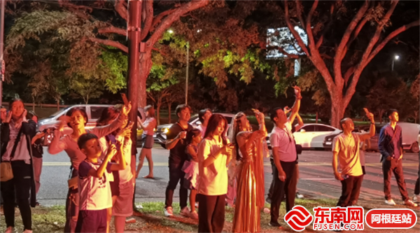 活动现场热闹非凡,五彩斑斓的烟花在夜空中绽放,宛如一幅幅绚丽的画卷。阿根廷华侨华人以及当地民众纷纷驻足观看,赞叹不已。