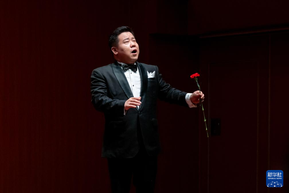 2月6日,中国著名歌唱家王宏伟在马来西亚吉隆坡的思特雅大学音乐厅表演歌曲《天路》。新华社发 (张纹综摄)
