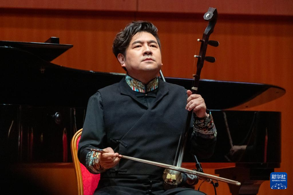 2月6日,在马来西亚吉隆坡的思特雅大学音乐厅,著名二胡艺术家陈军表演独奏《战马奔腾》。新华社发 (张纹综摄)