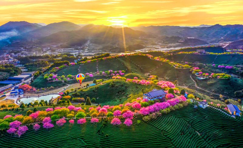 yongfu taipin cherry blossom tea plantation is located in yongfu town, zhangping city, longyan city, fujian province, china. it is a unique tourist attraction that combines tea plantations with cherry blossom landscapes. the plantation is home to a large number of cherry blossom trees. every spring (from january to march), when the cherry blossoms are in full bloom, the plantation is covered in a sea of pink flowers, creating a truly enchanting scene. as a result, it is hailed as one of "china's most beautiful cherry blossom destinations."