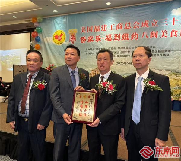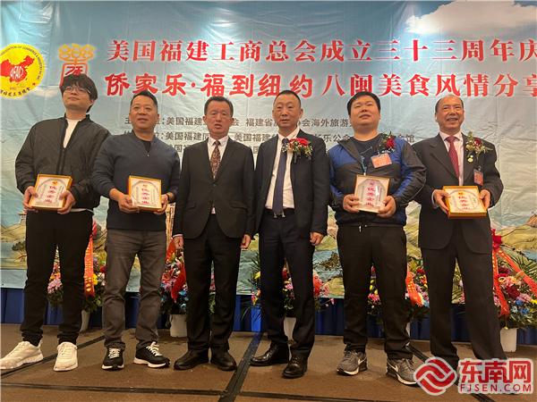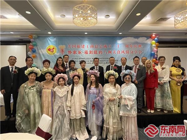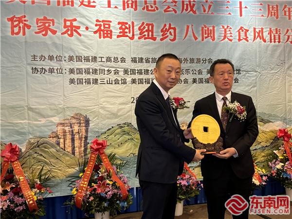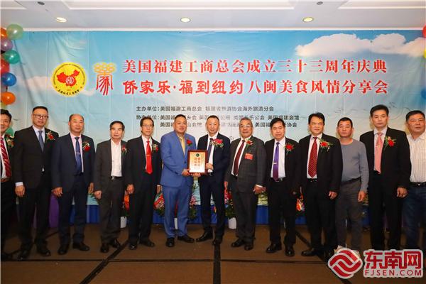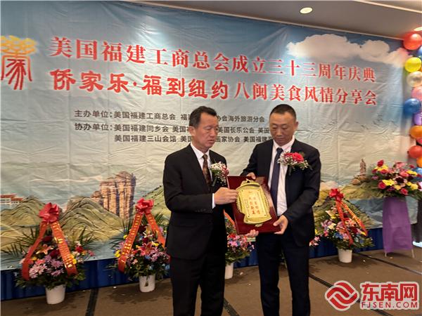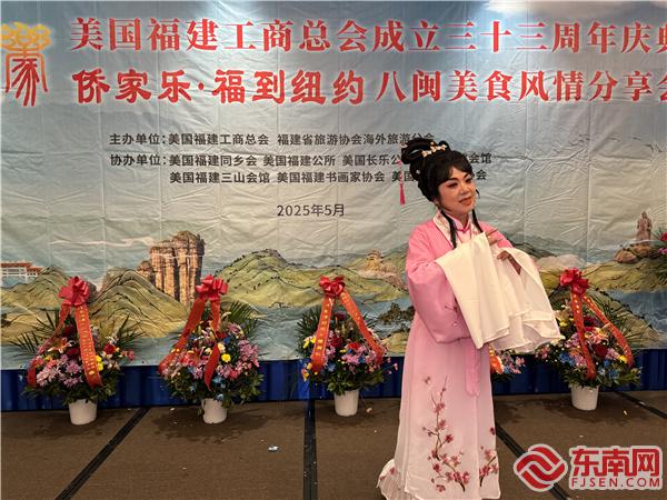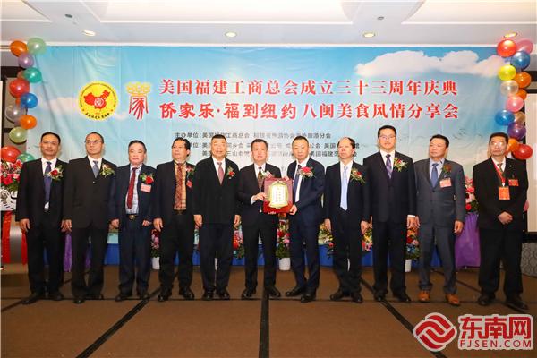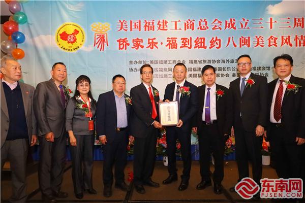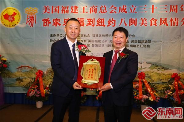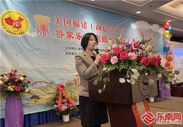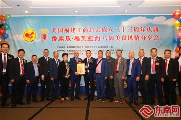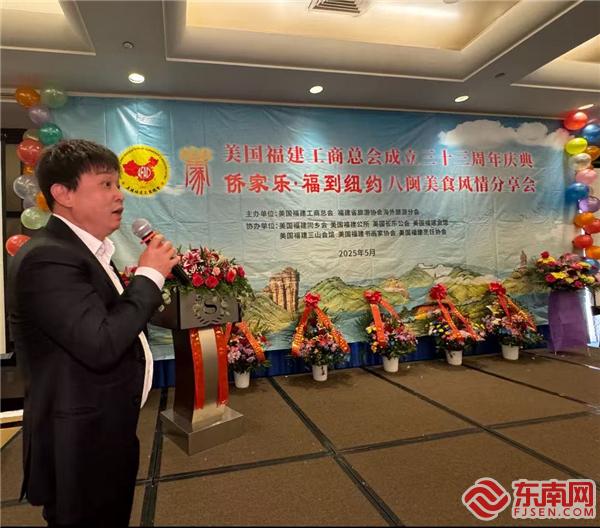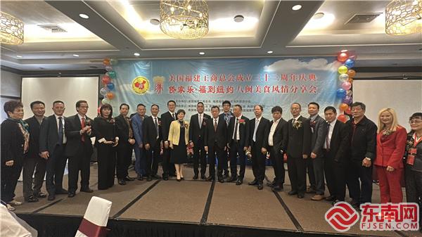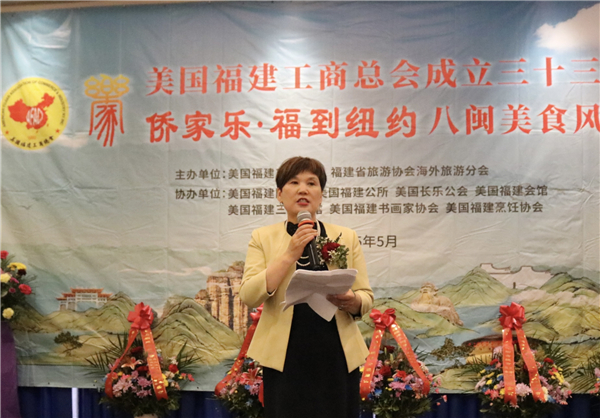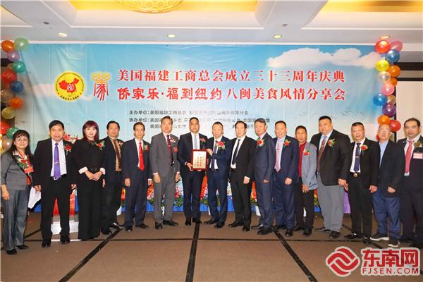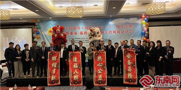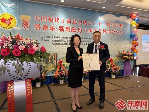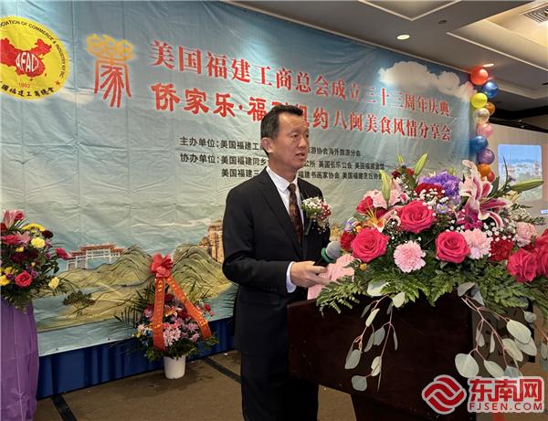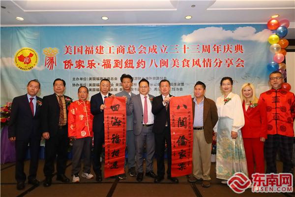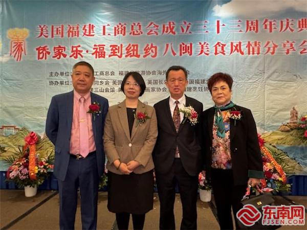 东南网5月25日讯(特约记者 白水 纽约墨人)当地时间5月24日,美国福建工商总会成立三十三周年庆典暨“侨家乐·福到纽约”八闽美食风情分享会(以下简称“庆典活动”)在美国纽约法拉盛喜来登酒店隆重举行。中国驻纽约总领馆副总领事孙丽萍、福建省侨联主席陈式海及所率福建省侨联代表团、美国福建工商总会主席郑伟、纽约州众议员金兑锡代表罗曼,以及纽约侨、商、学界人士等近500名嘉宾参加。