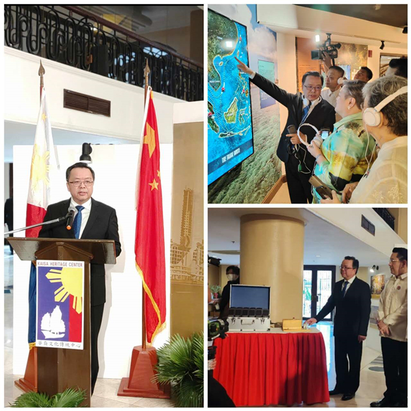 东南网5月31日讯 当地时间5月30日,中国驻菲律宾大使黄溪连与菲律宾候任外长拉扎罗共同出席由菲律宾华裔青年联合会和菲中友好协会举办的庆祝中菲建交50周年图片展暨使馆向华裔历史博物馆捐赠的智能讲解设备启用仪式。