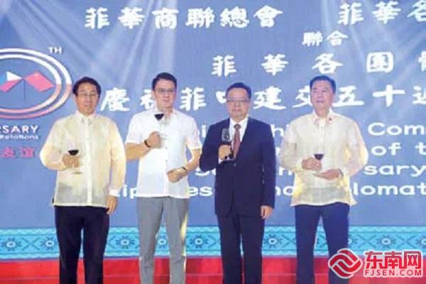 黄溪连在致辞中说,中菲两国一衣带水,人民血脉相亲。同时,广大华人华侨跨越山海,来菲扎根奋斗,义无反顾投身菲民族独立和解放事业,用勤劳智慧积极融入并推动菲经济社会发展,为成就今日菲律宾作出了巨大牺牲和卓越贡献。同时,华侨华人始终心系故土,用血脉亲情架起中菲友谊桥梁,以赤子之心投身家乡建设,,促进两国文化交流、利益交融。在庆祝中菲建交50周年之际,希望广大在菲华侨华人坚定信心,团结互助,携手并进,共克时艰,为中菲关系早日重回正轨并迎来更加美好的未来而不懈努力。
