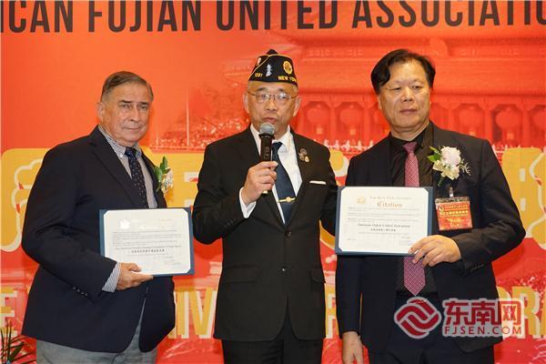 联合总会总干事吴振文宣读来自中国全国人大华侨委员会、福建省人大侨台外事与民族宗教委员会、政协福建省委员会、福建省海外联谊会、福建省侨联、福州市海外联谊会、福州市侨联、纽约中国和平统一促进会等贺信贺函。