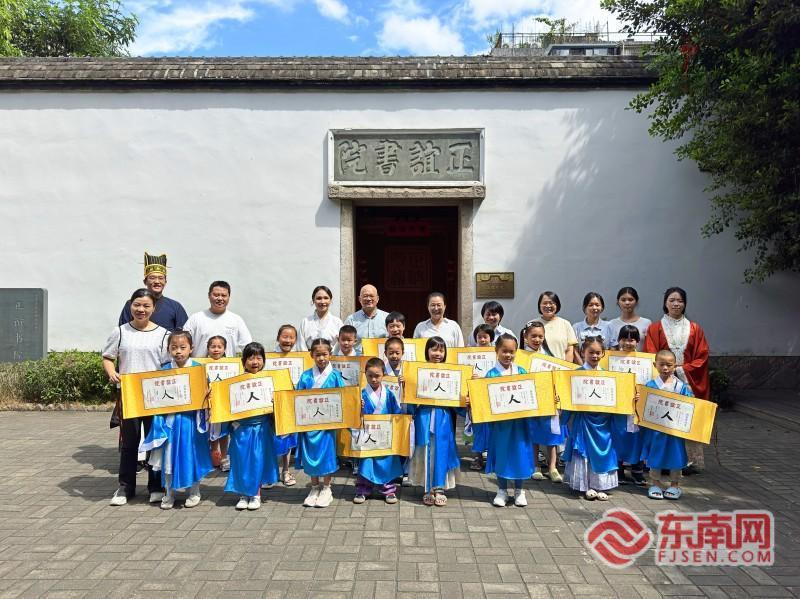 本次“开笔礼”兼具文化内涵与创新亮点,呈现三大特色:一是沉浸式文化体验,让传统“活”起来。孩子们身着书童服,在传统书院中体验开笔礼的仪式仪程,这种亲身参与的模式,把“尊师重道”的精神从口号变为行动,让孩子们沉浸式感受传统文化的底蕴与魅力。二是活化书院功能,彰显当代价值。古代书院承载着祭祀、教育、藏书等功能,“开笔礼”走进百年书院,通过现代视角创新仪式呈现形式,生动展现新时代书院教书育人的时代风采。三是挖掘书院文化资源,展示地方文化特色。活动立足正谊书院历史文化底蕴,将《正谊书院学规》融入仪程,并设计制作具有正谊书院特色的文创证书,既讲好正谊书院的文化故事,也为八闽书院文化传承传播提供了创新载体。