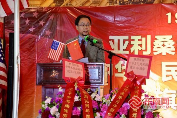 国庆筹委会总召集人杨文田、华总会长吴宁、和统会执行会长王盛君、asu中国学生学者联谊会会长沈佳雨先后致辞,祝贺祖(籍)国76周年华诞,并表达了对中美关系健康发展的期盼。随后,华总常务副会长陈志钢和副会长仇玺源代表宣读了中华海外联谊会与中国侨联的贺信,华总副主席吴亮祖则宣读了坦佩市市政府颁发的“中美友好月”贺信。