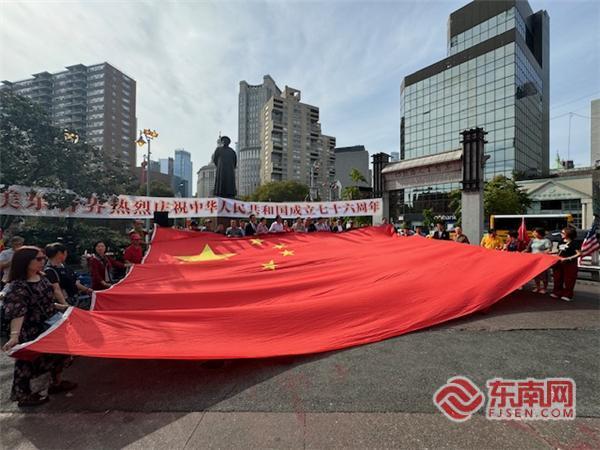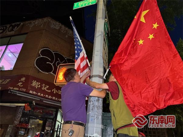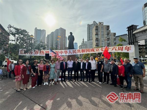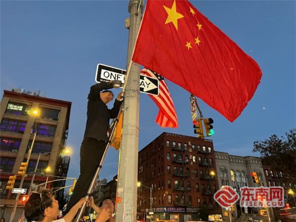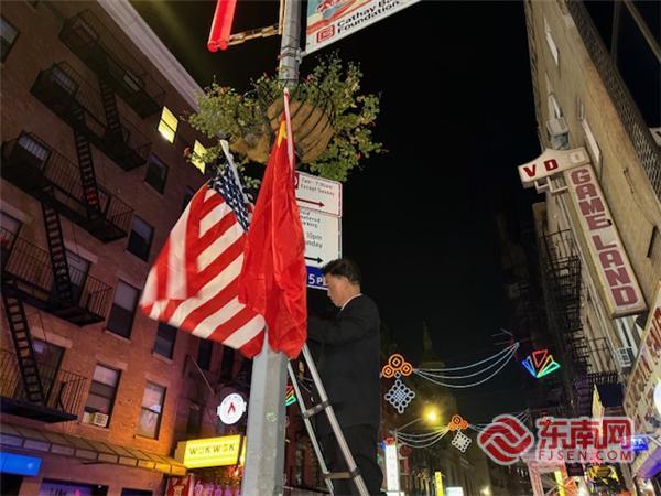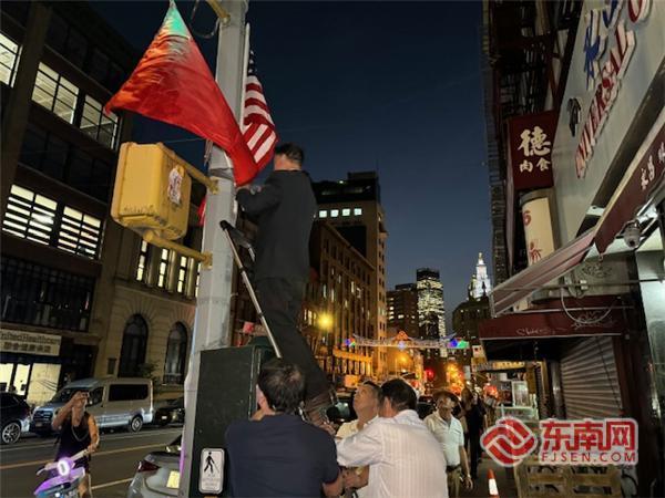 东南网10月1日讯(特约记者 纽约墨人)当地时间9月30日,纽约多个侨团在纽约唐人街、中国街、勿街等主要大道挂起中美两国国旗,以庆祝中华人民共和国成立76周年暨纪念中美建交46周年(以下简称“庆祝活动”),祝愿中美两国人民友谊长存,祝愿祖国繁荣昌盛。