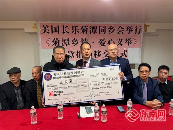 东南网12月10日讯(特约记者 纽约墨人)当地时间12月9日,美国长乐菊潭同乡会在法拉盛举行“菊潭乡情·爱心义举”捐助善款的移交仪式(以下简称“移交仪式”),这笔九万多美元的捐助善款将用于纾解乡亲王卫明家庭的医疗费用负担。美国长乐菊潭同乡会主席王玉武、议长王晨暹、第一常务副主席王荣江,美国福建三山会馆主席郑振何、秘书长王寅,美国长乐菊潭同乡会创会主席王永享,名誉主席王优奇、王文剑、王文美、王永应,执行主席王明建、王晨暾,荣誉议长王木平,常务副主席王文淦、王宗宝、王云兵、王剑秋、王永慈、王依俊、王增善、王显泉、王颐强,妇女部长刘爱贞、王美玲、王秋玉等参加移交仪式。王永应主持移交仪式。