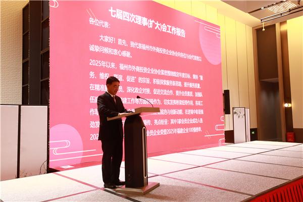 会上,福州市外商投资企业协会会长陈继鹏作理事会工作报告,全面回顾了过去一年协会在精准服务会员、深化政企对接、促进交流合作、提升会员素质、加强队伍建设等方面的工作成效,并部署下一年度重点工作。