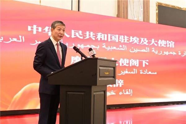 廖力强首先宣介习近平主席向2026年“中非人文交流年”开幕式致贺信,贺信强调“在中非开启外交关系70周年之际举办‘人文交流年’,是中非领导人达成的重要共识,是在新的历史起点上推动中非友好进一步深入人心的重要举措”。王毅外长在非盟总部出席开幕式活动,是中国外长连续36年年初首访非洲。今年是中埃、中非建交70周年,希望两国以“中非人文交流年”为契机,赓续传统友好,加强文明互鉴,携手推进现代化,为推动构建人类命运共同体作出新的贡献。廖力强向旅埃侨胞致以新春祝福和亲切慰问,充分肯定侨胞为促进中埃、中非友好合作、服务祖国发展所作贡献,希望侨胞继续发挥以侨为桥作用,以实际行动为中埃、中非友好作出生动注脚。