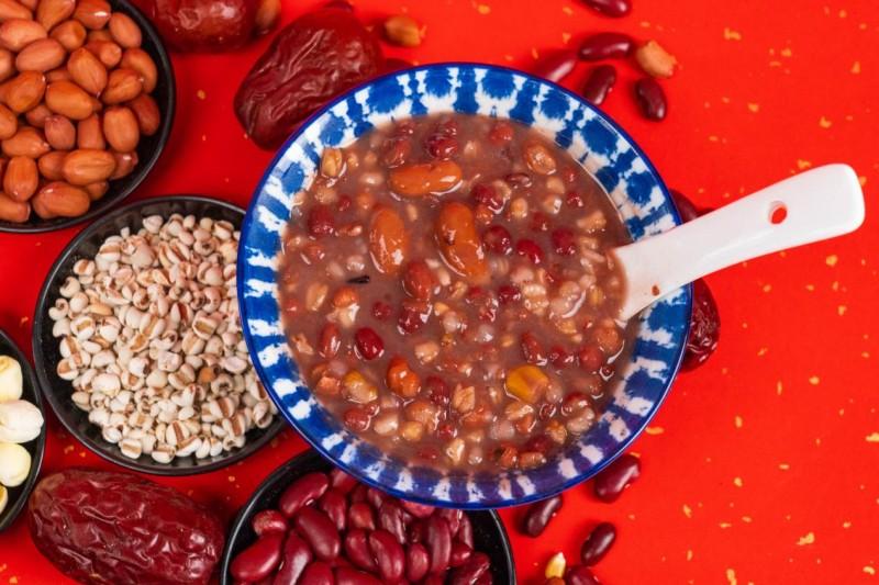 laba porridge (labazhou) usually includes four kinds of ingredients. the first is grains, such as rice, millet, oats, or glutinous rice. the second is beans, like red beans, soybeans, and mung beans. the third is nuts, such as hazelnuts, walnuts, and almonds. the last group is for flavor, including tasty raisins, dried longan, red dates, and more.